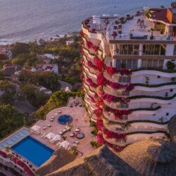 Discover the unparalleled elegance of Grand Miramar All Luxury Suites & Residences, nestled in the prestigious Conchas Chinas neighborhood south of the Malecon in Puerto Vallarta. Perched atop the highest point in both Puerto Vallarta and Banderas Bay, this luxurious retreat offers an unmatched panoramic vista of the majestic Pacific Ocean.